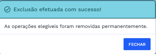 Clicando em CONFIRMAR o sistema excluirá as operações e mostrará uma janela com a seguinte mensagem de sucesso: