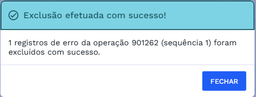 Clicando em CONFIRMAR o sistema excluirá os erros e mostrará uma janela com a seguinte mensagem de sucesso:
