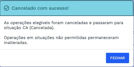 ⚠️ Importante: Mesmo ao selecionar todas as operações, somente aquelas que estiverem nas situações listadas acima serão efetivamente canceladas.